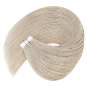Blonde tape hair extensions is a very perfect solution for adding length or changing color or fullness to your hair.It is similar to PU skin weft, also called seamless hair extensions,but it is much easier and more convenient to wear and remove,without bond,heat or chemical,just putting double-sized tape on the hair weft.What’s more,Tape is inclusive of White Tape;Blue Tape;3M Tape,they are very strong and can be reused for a long time.